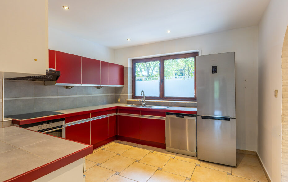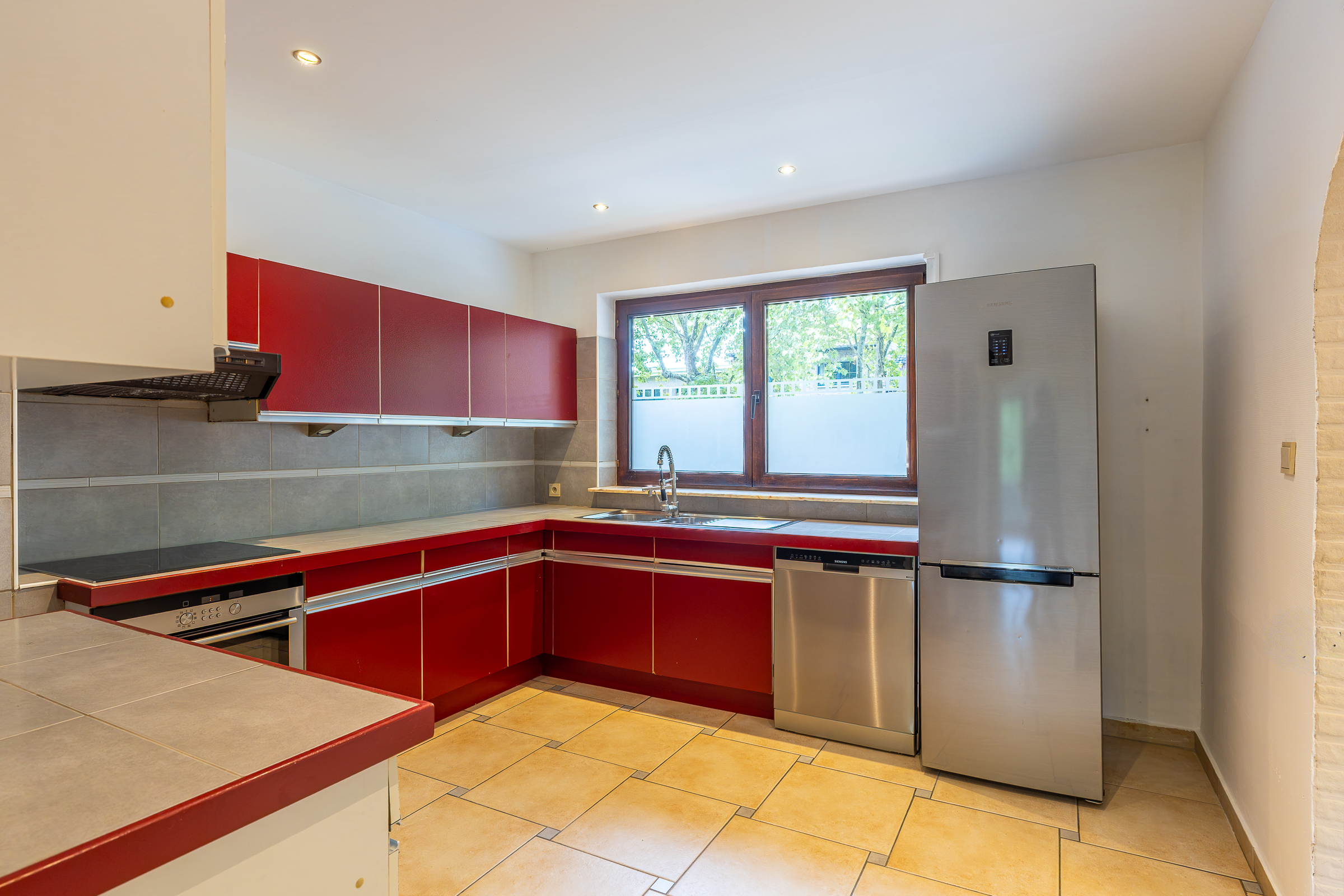 Le séjour traversant baigné de lumière s’ouvre sur une cuisine équipée avec des électros récents, un WC, tandis qu’une chambre de plain-pied avec le séjour offre une belle flexibilité d’aménagement (chambre d’amis, bureau ou espace parental). Au rez-de-chaussée, deux chambres accueillantes et une salle-de-bains avec WC complètent la partie nuit. Le rez-de-jardin a été aménagé offrant un potentiel d’affectations diverses : bureau, salle de jeux, studio ou cabinet médical. Garage, parking privatif et jardin et terrasses complètent agréablement l’ensemble.